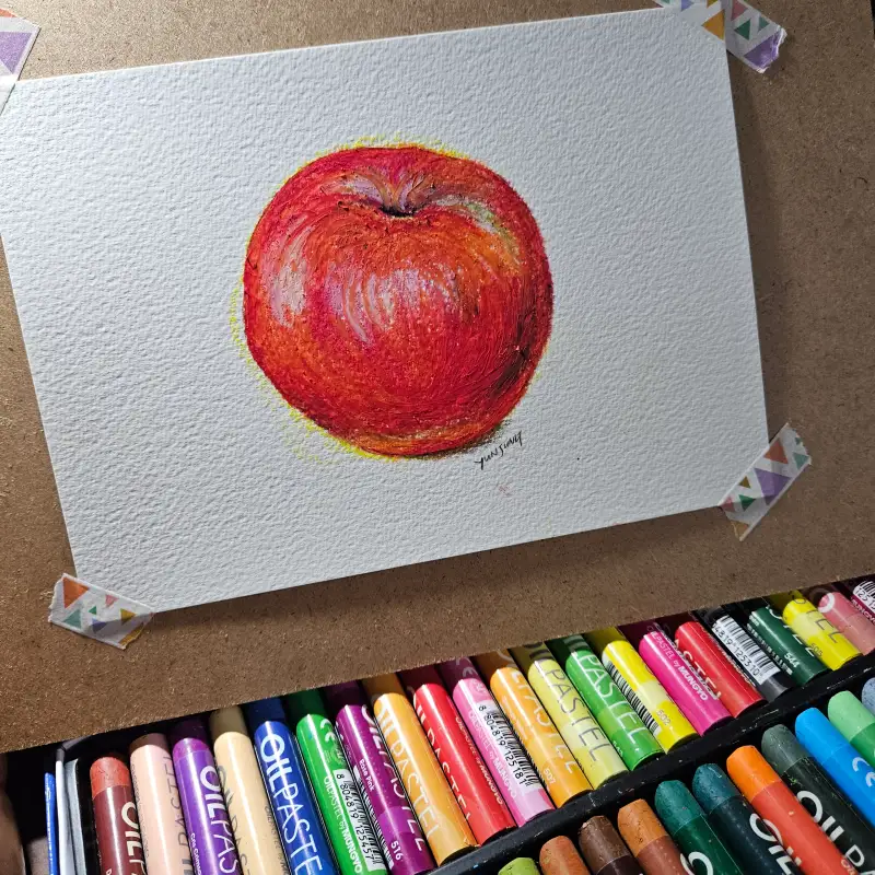 종이는 캔손 300g 약간의 질감이 더 사과표면을 표현하기에 좋았던거 같습니다.