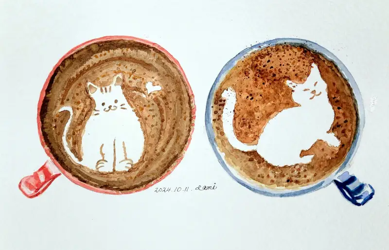 시나몬이 솔솔 뿌려진 라떼와 냥이의 조합을