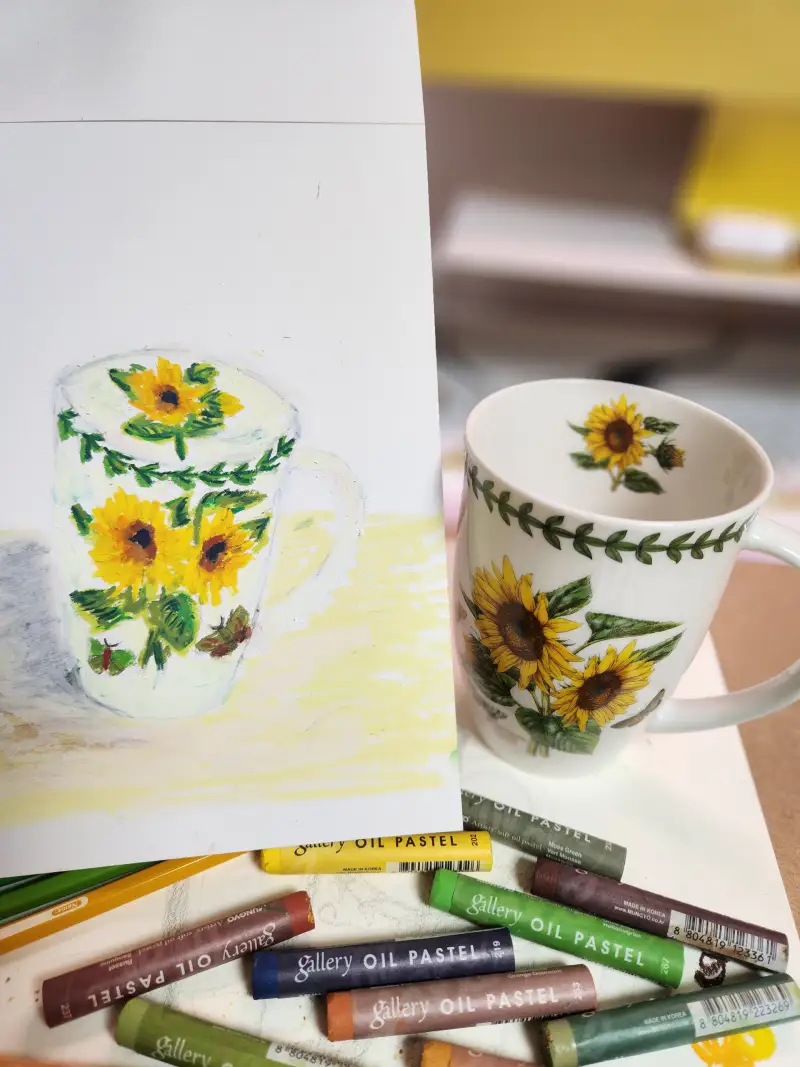 좋아하는 컵 2번째 그림, 많이 부족하지만 오일파스텔 재밌어요.