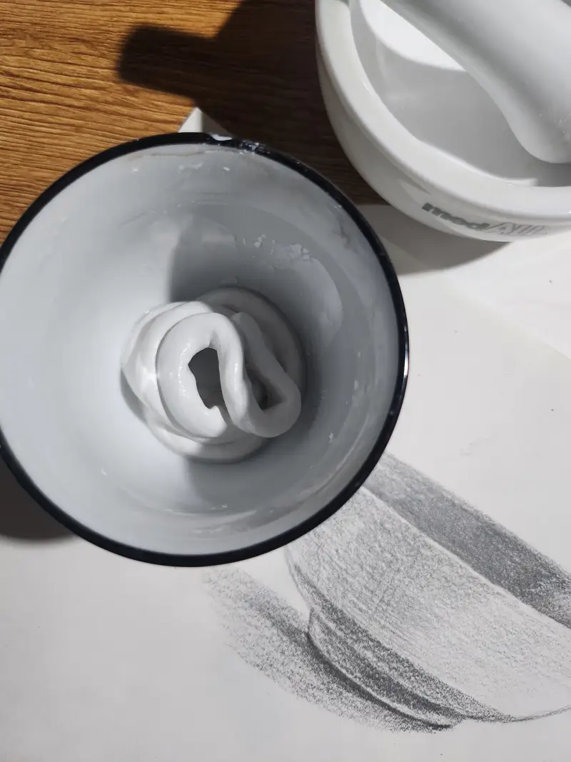 처음으로 호분가루를 유발그릇에 갈아내고 아교를 섞어 반죽했다.
