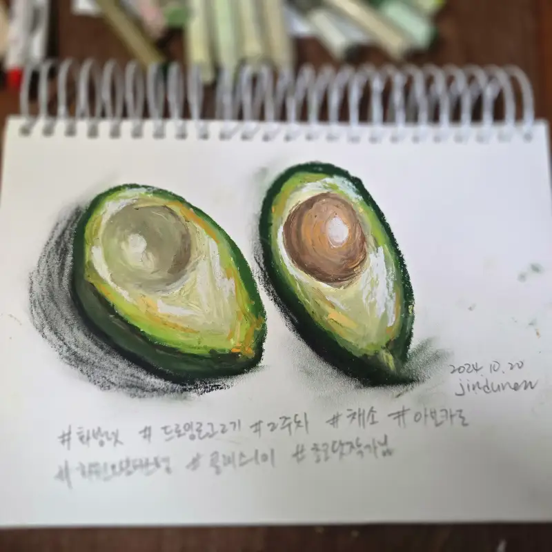 #드로잉로그2기 #2주차 #채솝 #아보카도 #화방넷 #드로잉이벤트 #초크닷작가님 #클래스101 #화원드로잉패드 #화원오일파스텔