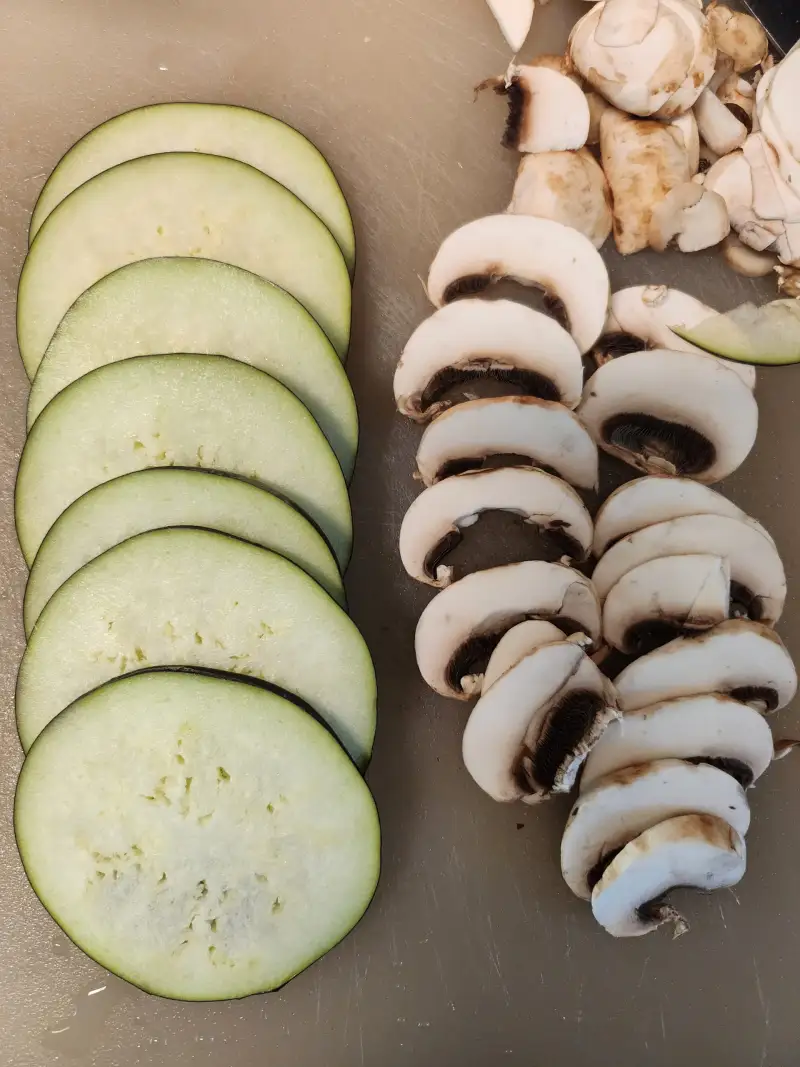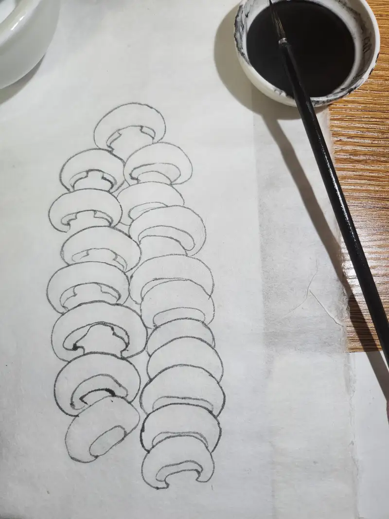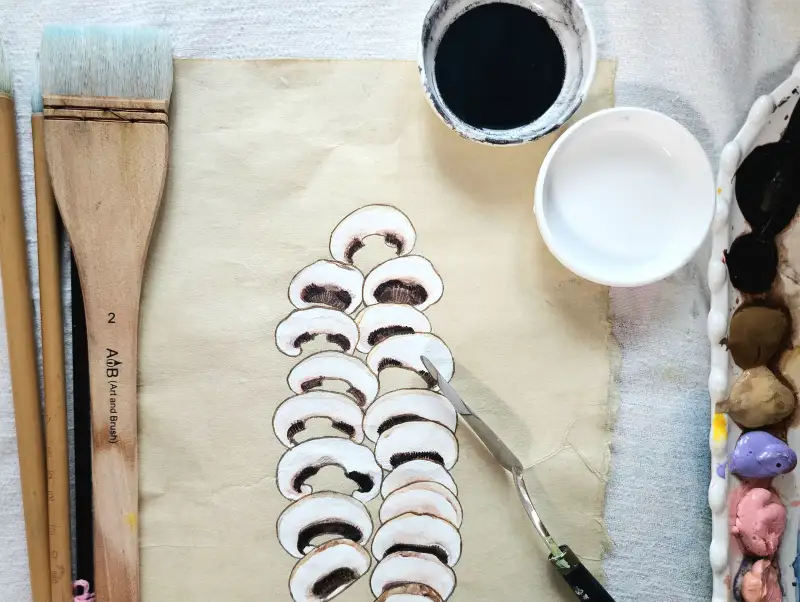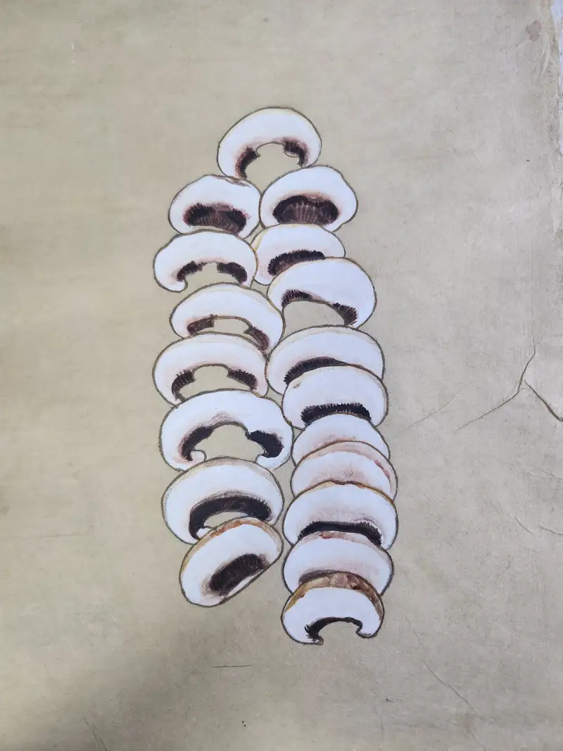 도마에 썰어둔 양송이가 나란하니 예뻐보여 그리게 됐습니다.