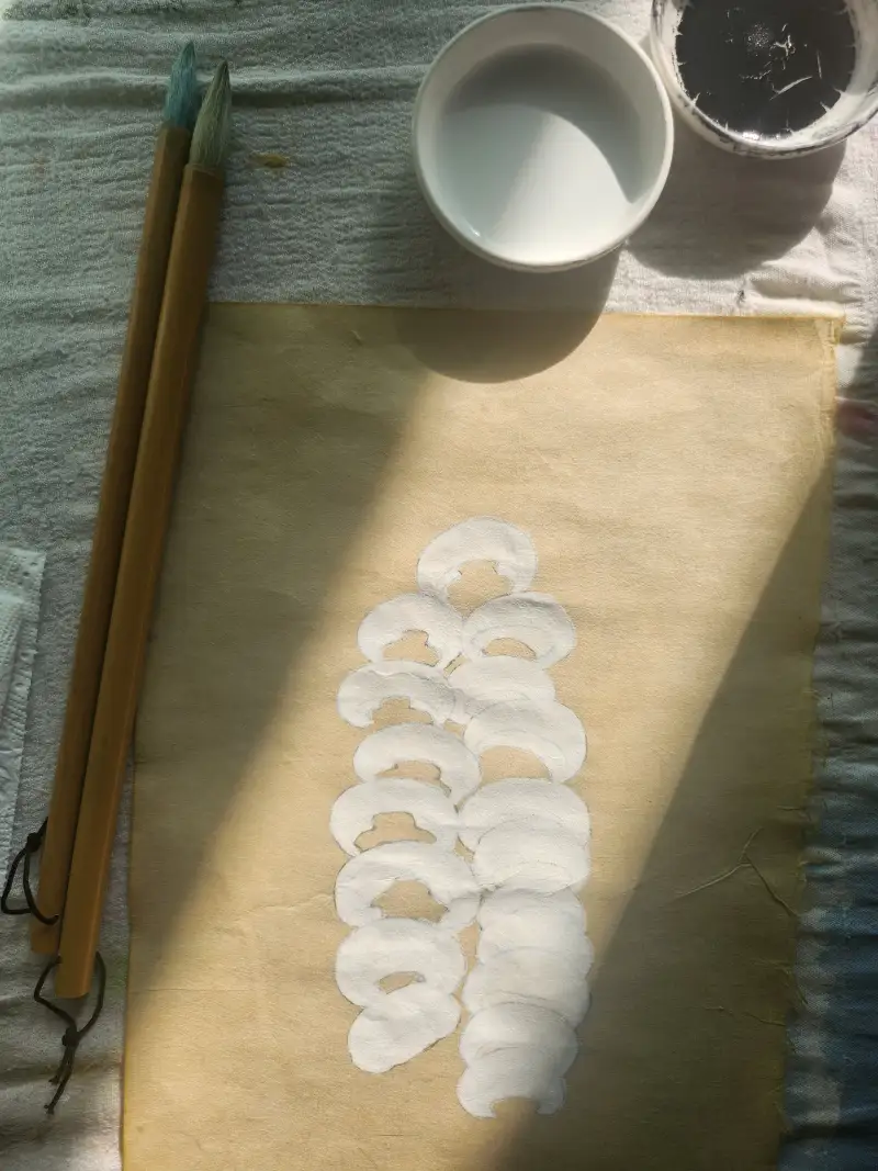 하얀종이를 아교포수하면 밑색을 깔아줍니다.