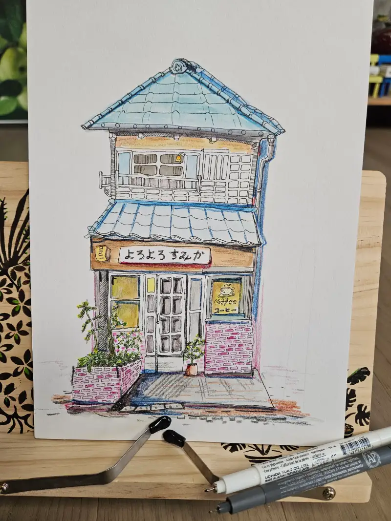 따라그리기 해보는데 건물이 삐딱해졌네요.
