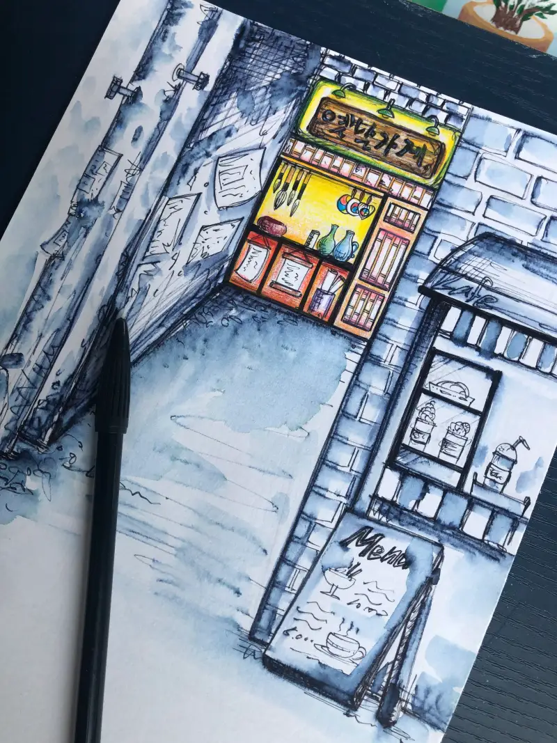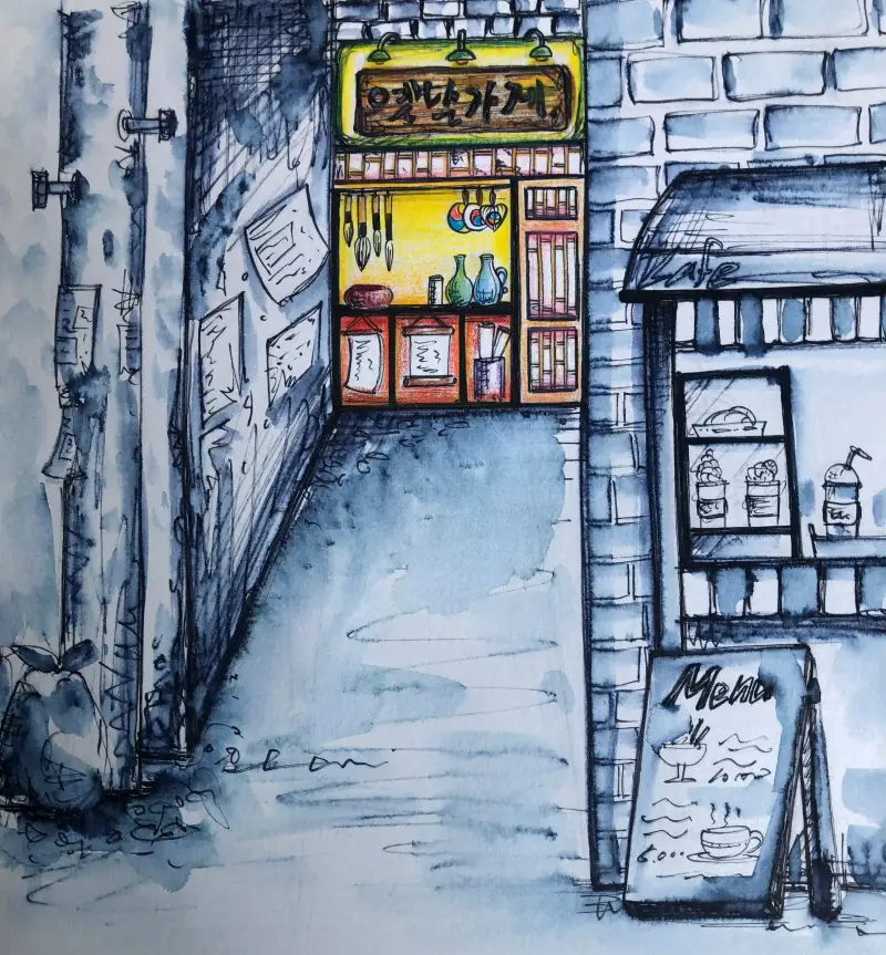 어떤가게였는지 정확한 기억은 없지만 상상을 쬐금보태어 그려보았다..