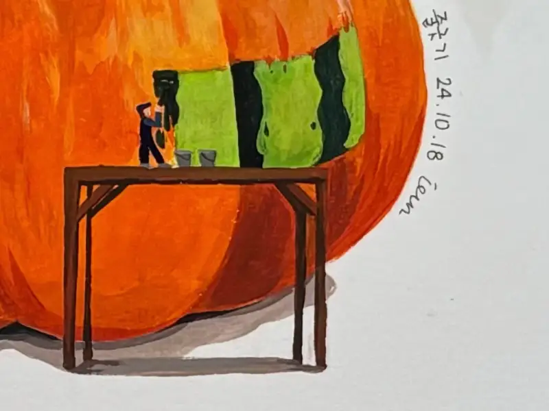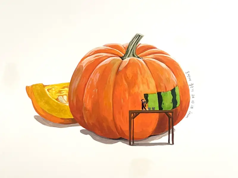 첫번째 브로콜리 나무집에 이어 이번에는 호박에 줄긋는 상상을 해보았어요.