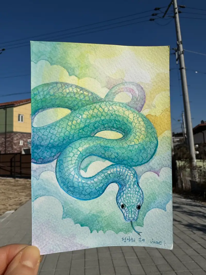 푸른뱀 수채화 그리기.