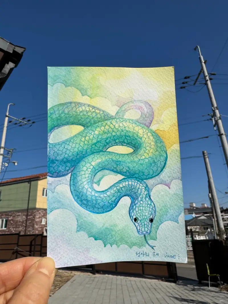 #새해그림 #푸른뱀 #을사년 #푸른뱀수채화