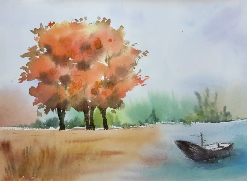 단풍나무가 있는 강가입니다.