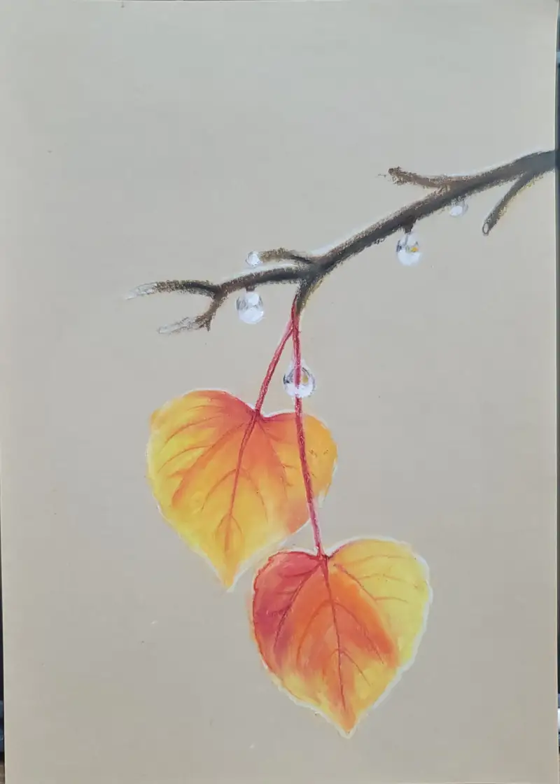 물방울 맺힌 예쁜 가을 나뭇잎 사진 보고 그려봤어요. 챌린지는 처음인데... 신청된거 맞겠죠? ^^;;
