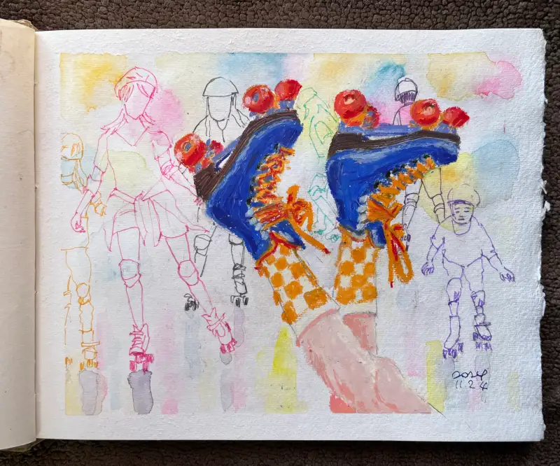 2주차 주제가 애착신발'인데 이젠 편한 신발은 무조건 애착이라서 고르기 힘들기에 궁리 끝에 롤러스케이트를 그리자 싶어서 시도.