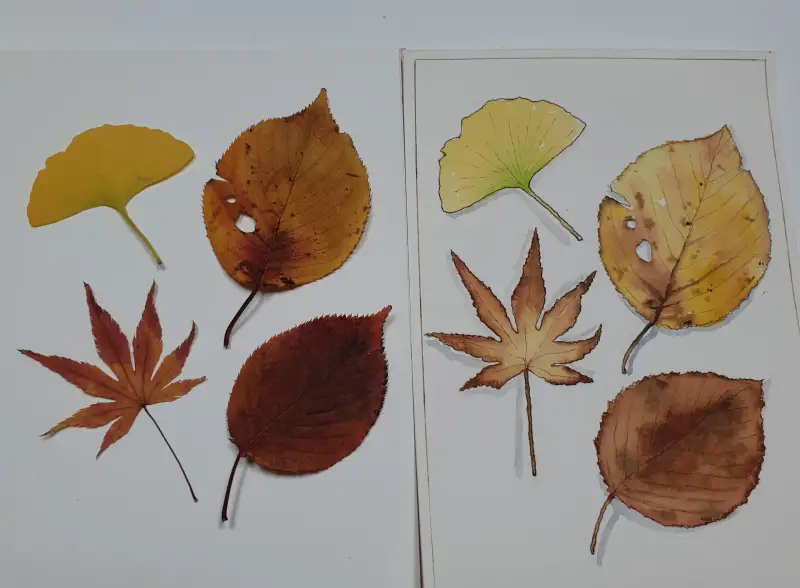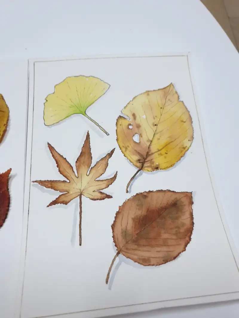 납작히  말린 낙엽을  그리며 가을을  즐겨봅니다~