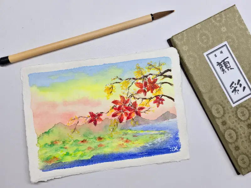 그리고 그 위에는 진한 색감의 단풍을 그리기 위해 시넬리에 오일파스텔을 사용,