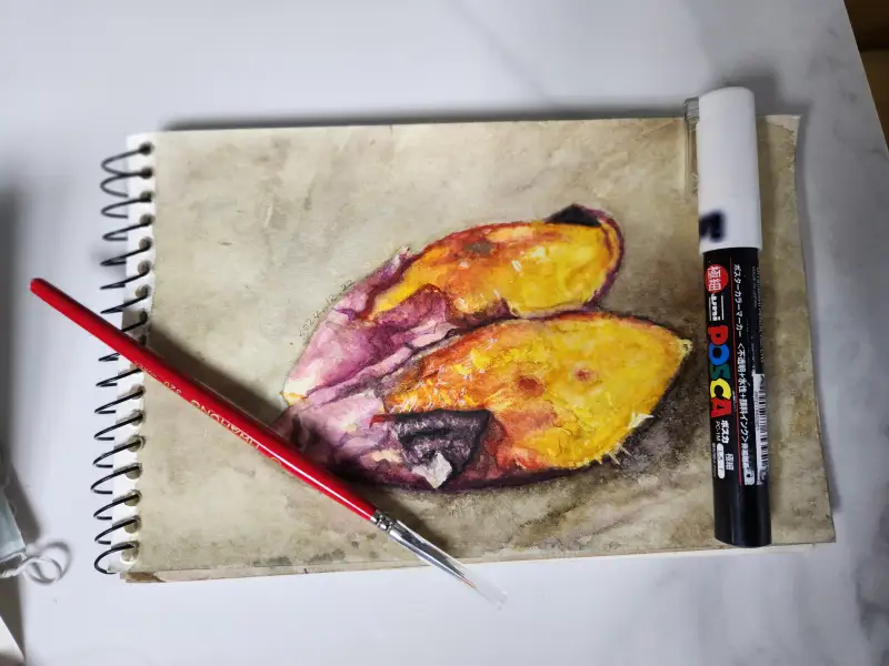 좋아하는 촉촉하고 윤기나는 군고구마를 그리기로 하였는데