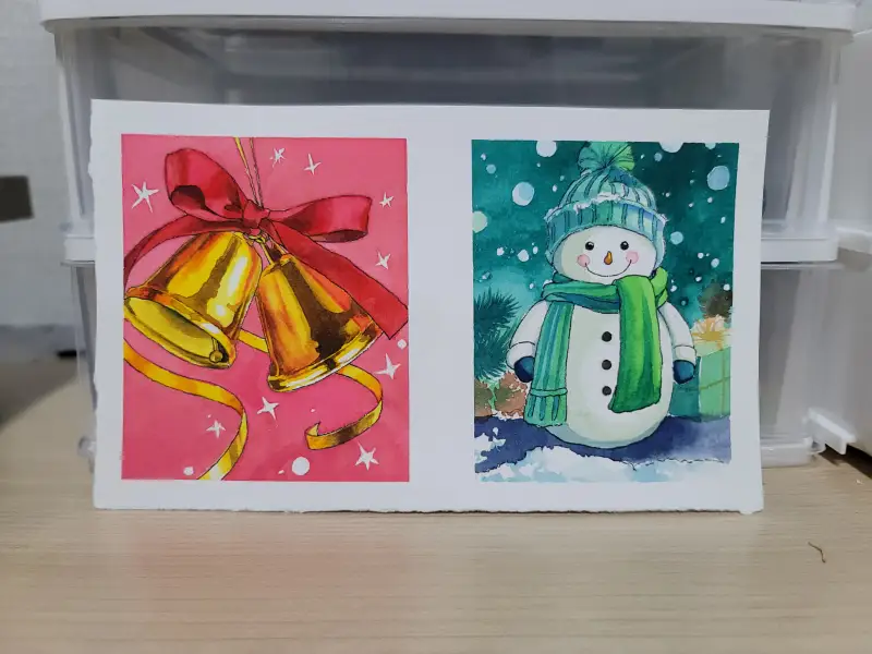 눈사람이 귀엽게 생겨서 기분좋게 그렸어요.