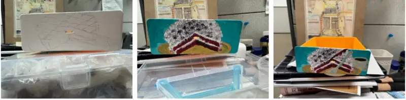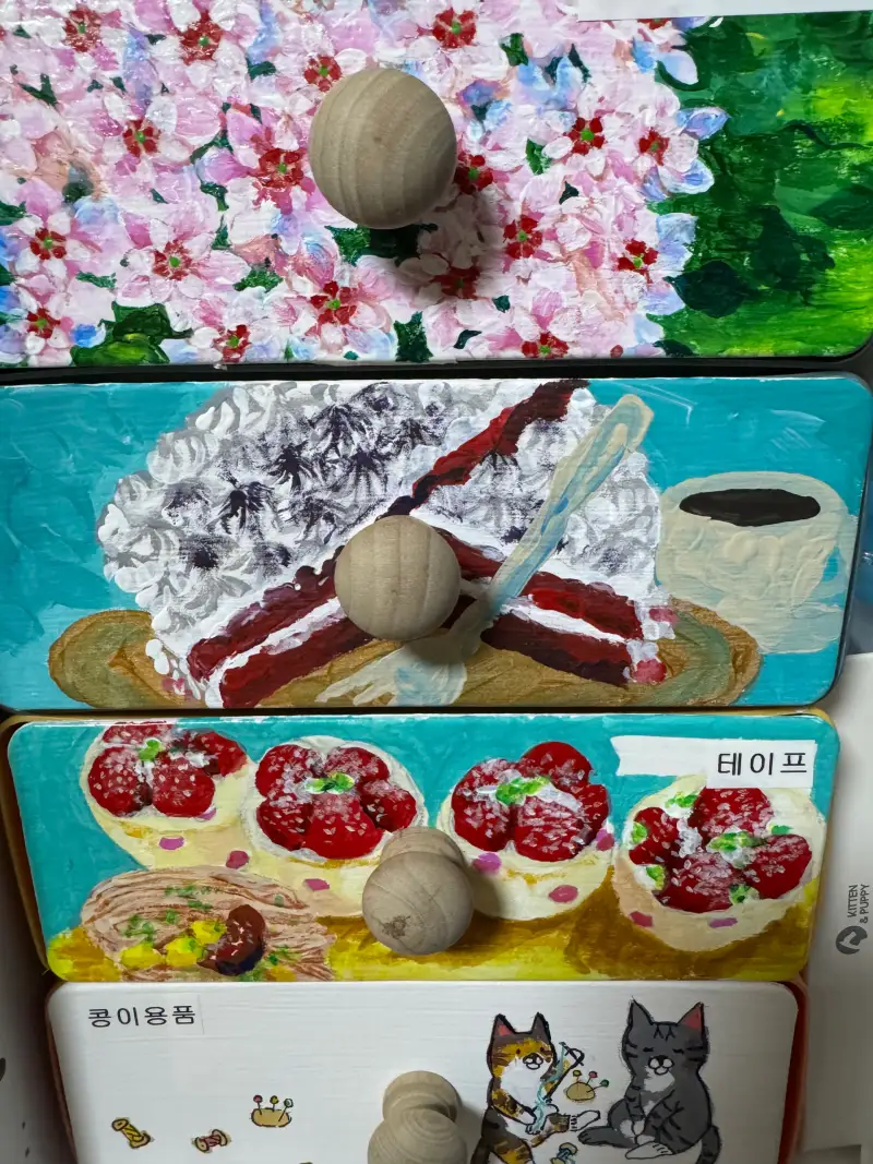 그냥 평범한 미니서랍에 아크릴로 그림을 넣었는데 플라스틱 기본색 때문에 발생이 안되서 어렵게 젯소칠을 해 두었다.