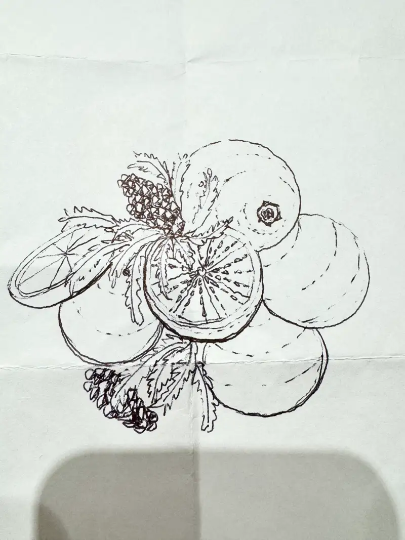 제주에 오니 트리에 귤 오너먼트가 있어서 황급히 그려봅니다