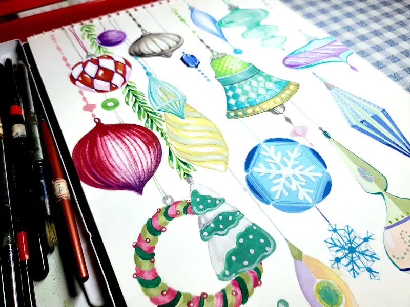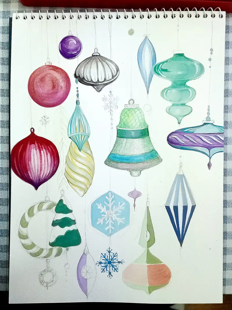 보고 그리고 지어내서 그리고, 크리스마스 색채가 아니어도 마구마구 그려봅니다.