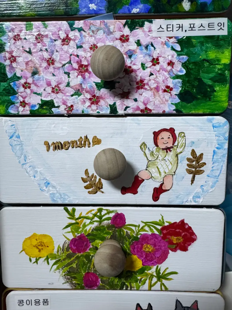 이번 주는 리폼하려고 젯소칠을 해 두었던 플라스틱 미니 서랍을 2024년 선물로 채웠다.