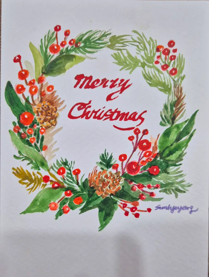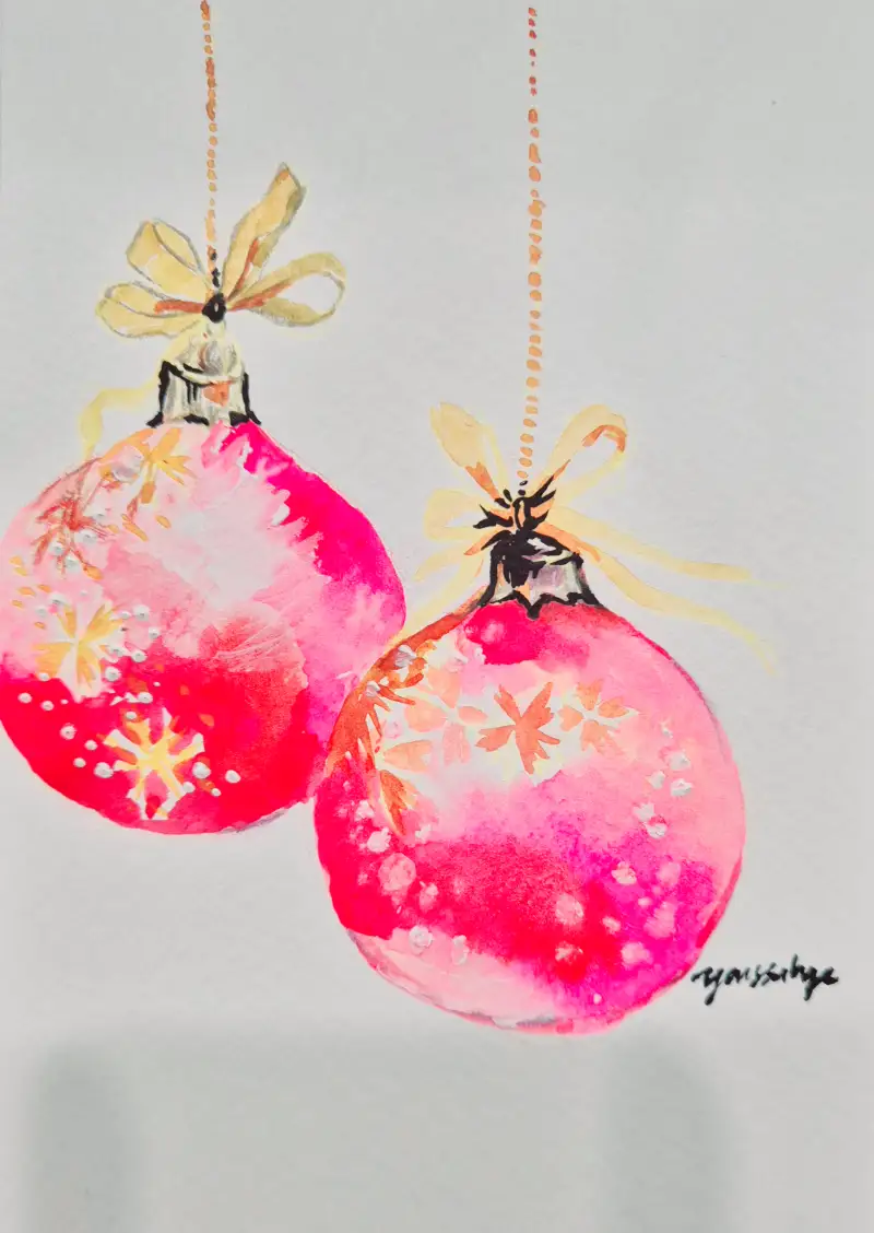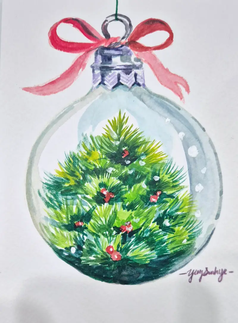 이번 크리스마스에는 엽서 사이즈의 크기로 크리스마스 오나먼트들을 그려서 카드처럼 선물을 주었답니다.