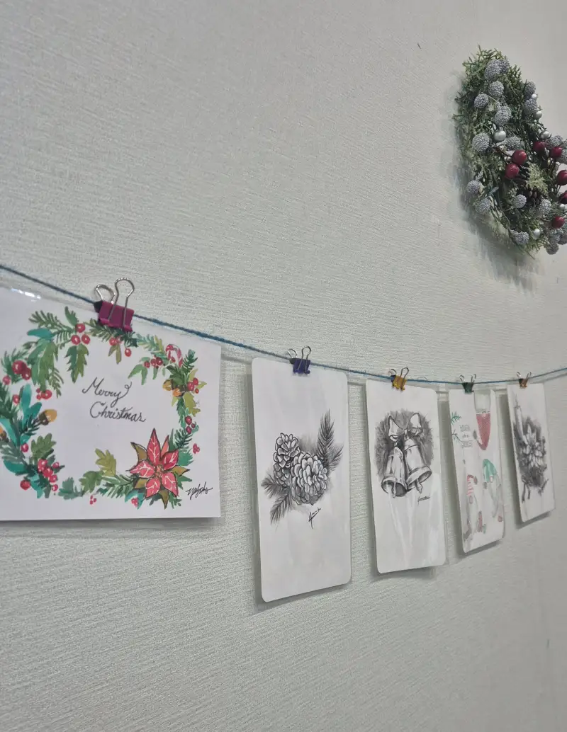벽에다 쭉 걸어보니 나름 장식효과도 있고 따뜻한 크리스마스 느낌도 나더라구요.
