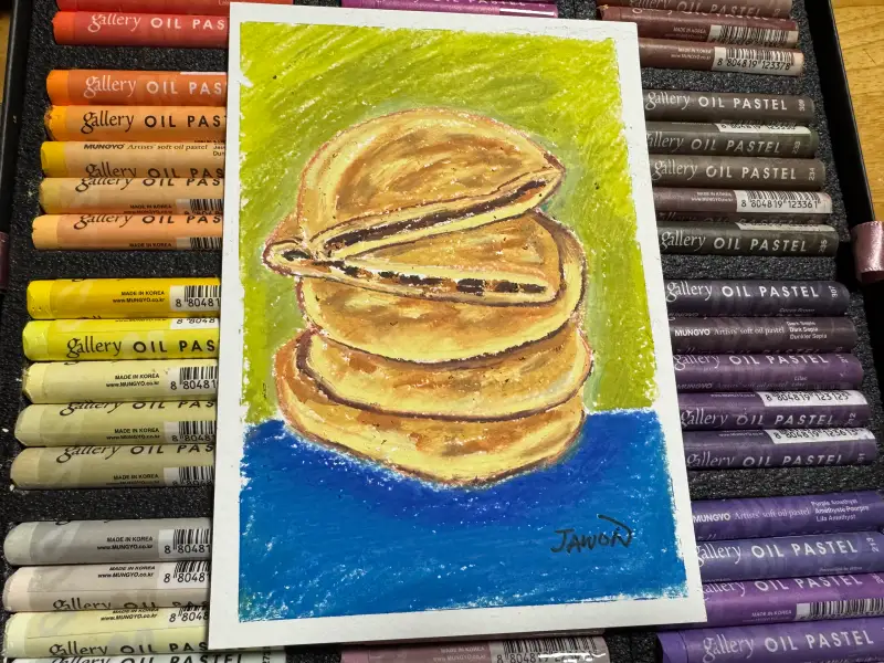 화방넷드로잉로그,4기,겨울간식,문교오일파스텔,꿀호떡,한개로는부족해,취미미술,오일파스텔초보