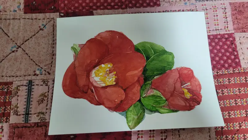 겨울에 볼 수 있는 꽃이 좋겠다 싶어서 동백꽃을 그리게 되었다.