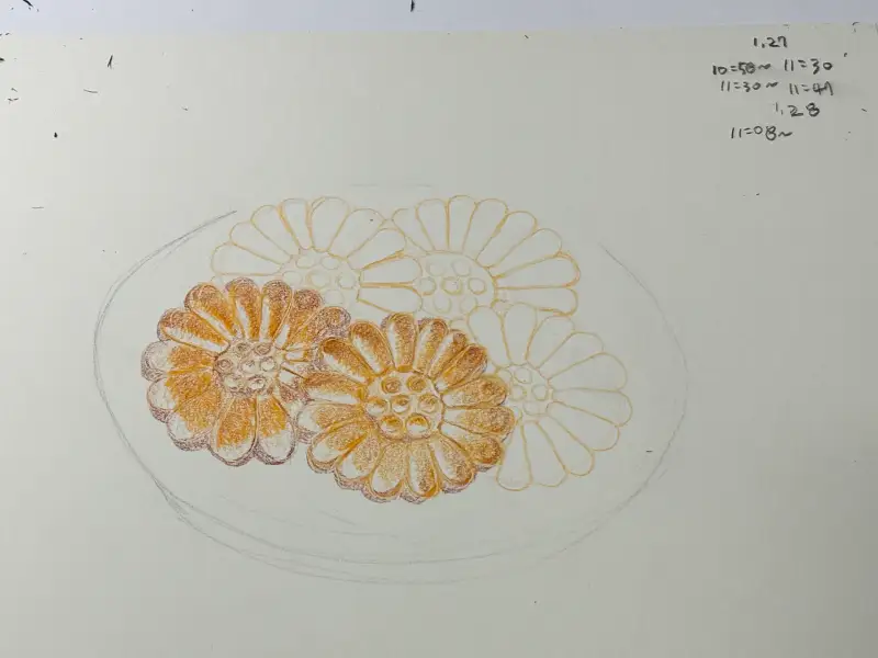 나머지 약과도 밑그림을 끝내고 모두 색칠하면 완성!