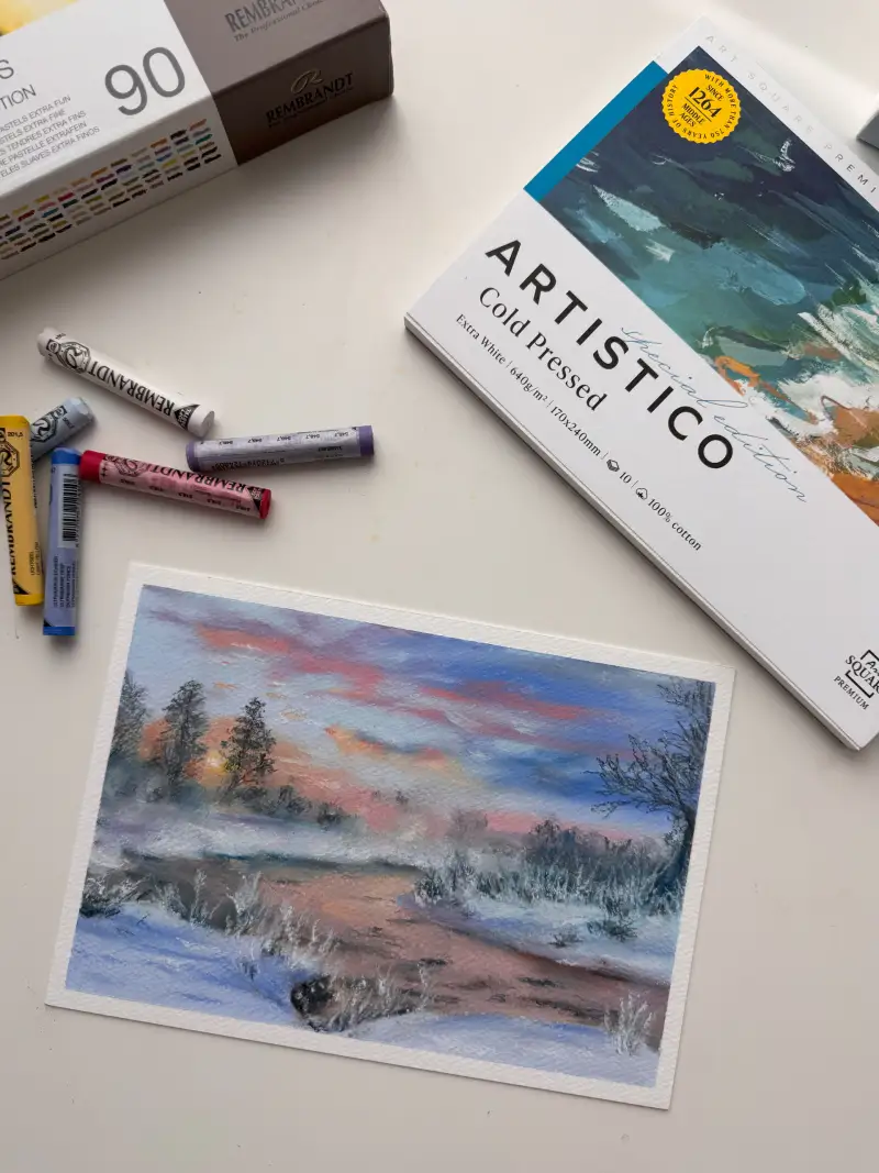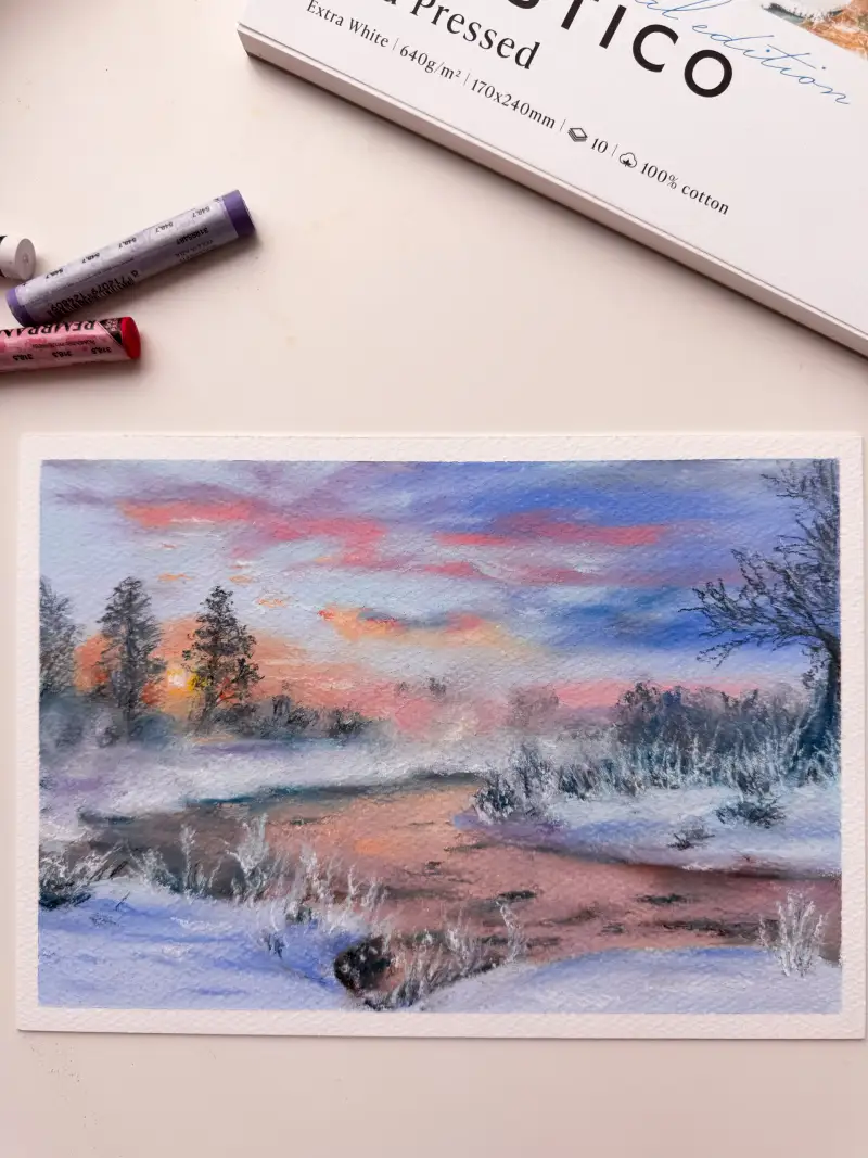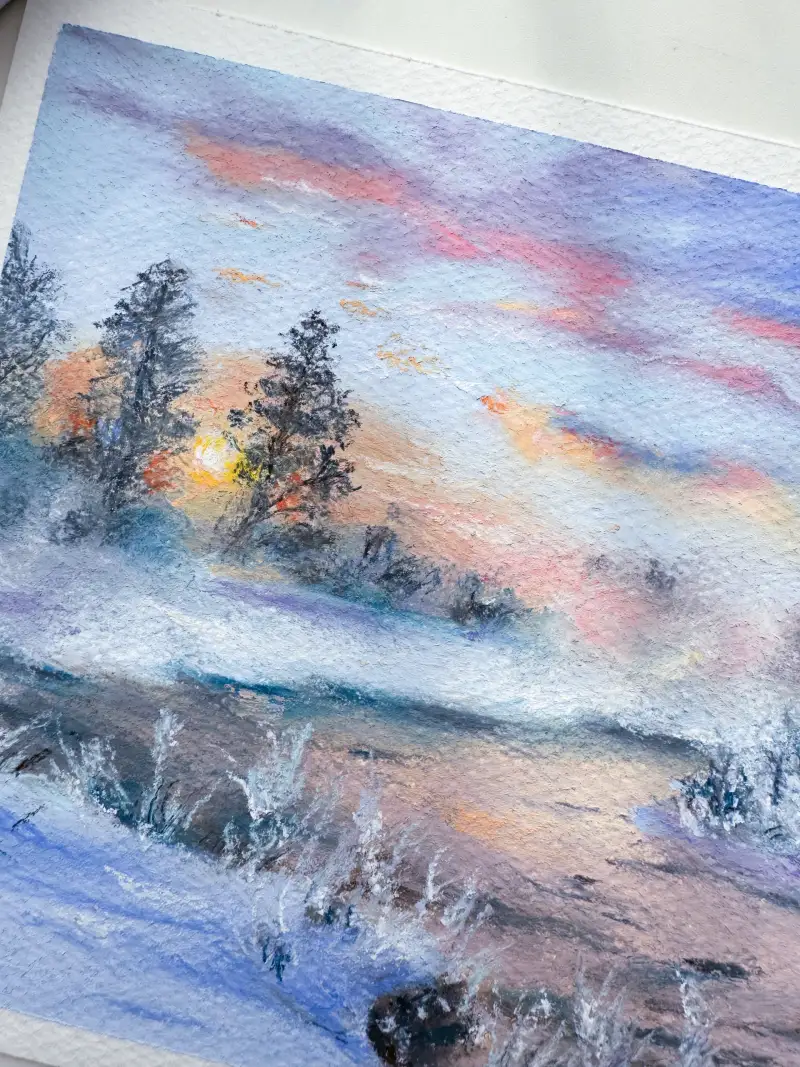 두번째는 조용한 새해아침 풍경을 소프트파스텔로 부드럽게 그려보았어요. ☺️