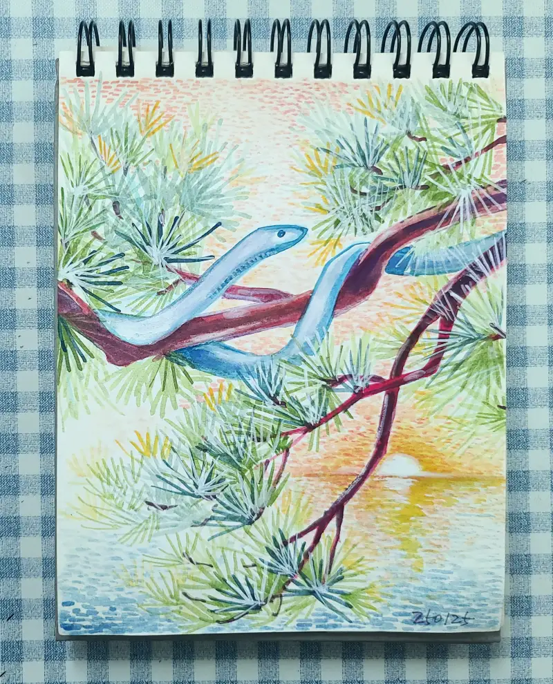 일본.비단에 채색된 그림이었던 것 같은데..🤔 구도가 멋쪄서 간단히 연필로 구도만 잡아두고 모사를 해 볼 생각이었거든요. 캡쳐해두지 않아서ㅡㅡ 다시 몇 시간째 찾다가..결국 못 찾아서😂 해가 뜨는 풍경을 넣어 내맘대로 그림이 되었어요ㅎㅎ (아마. 보고 그렸어도 전혀 다른 그림이 됐을테지요^^*)
