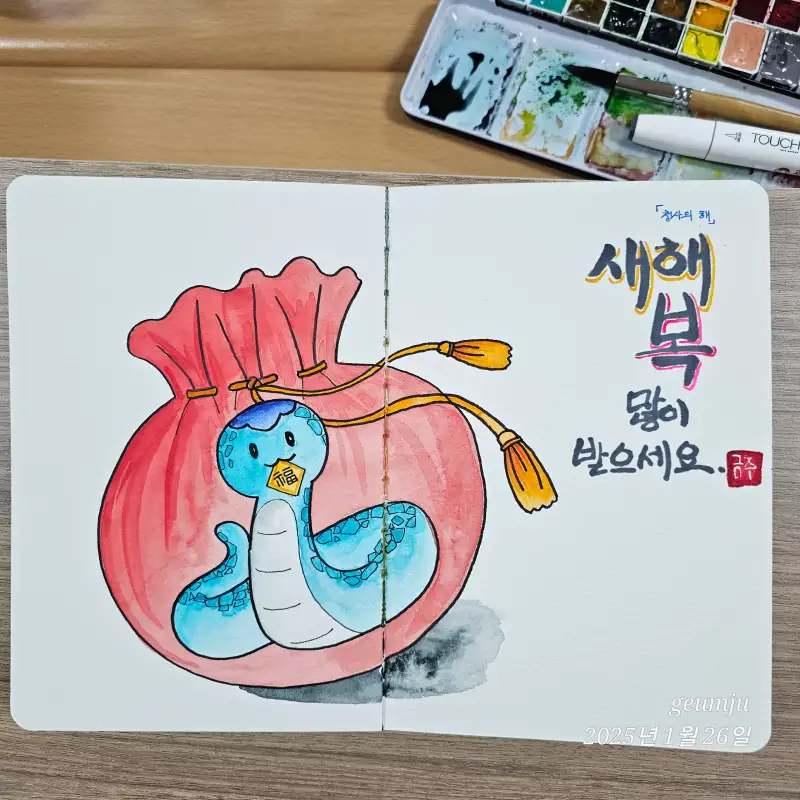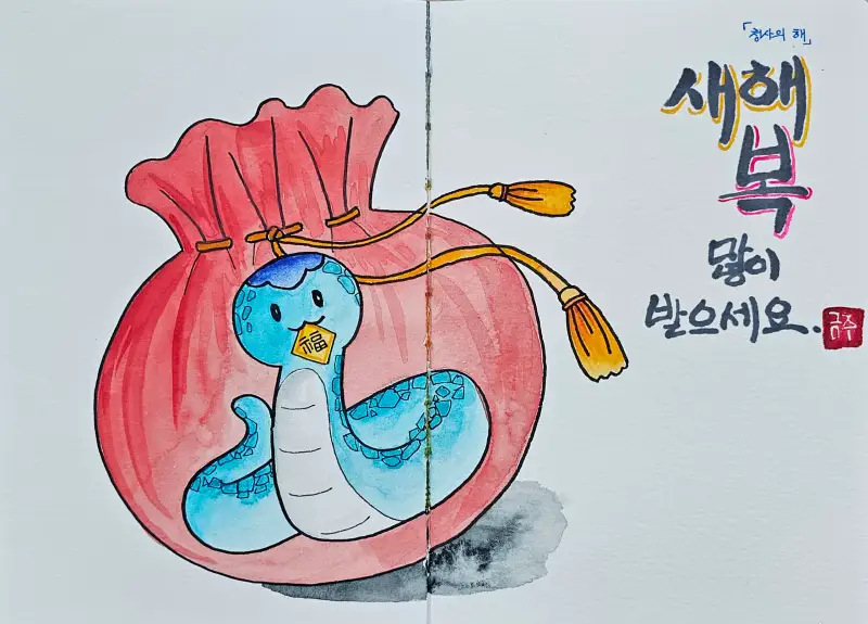 이렇게 그려보니 나름 뱀도 귀여울수 있구나.,