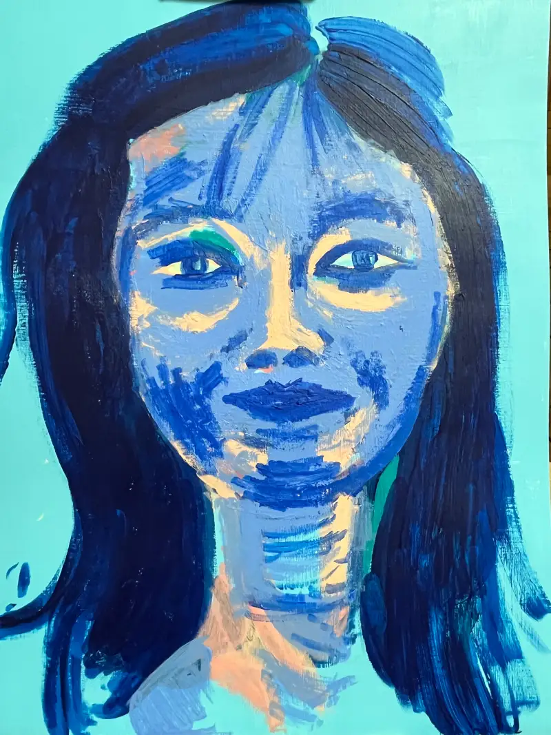 동생이 용띠인데 마침 청룡의 해라서 동생 얼굴을 청색 계열로 표현해 보았습니다.