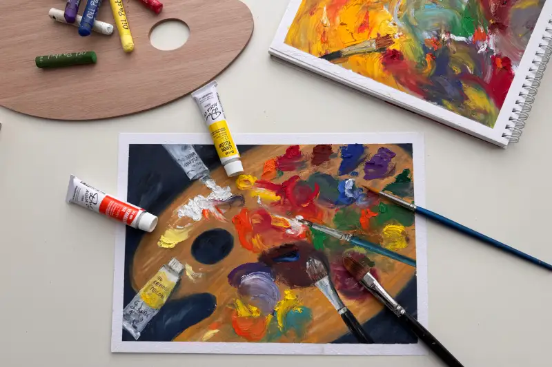 본 그림에서는 팔레트에 붓이랑 물감이 올라가있는걸 그리기로 계획하고