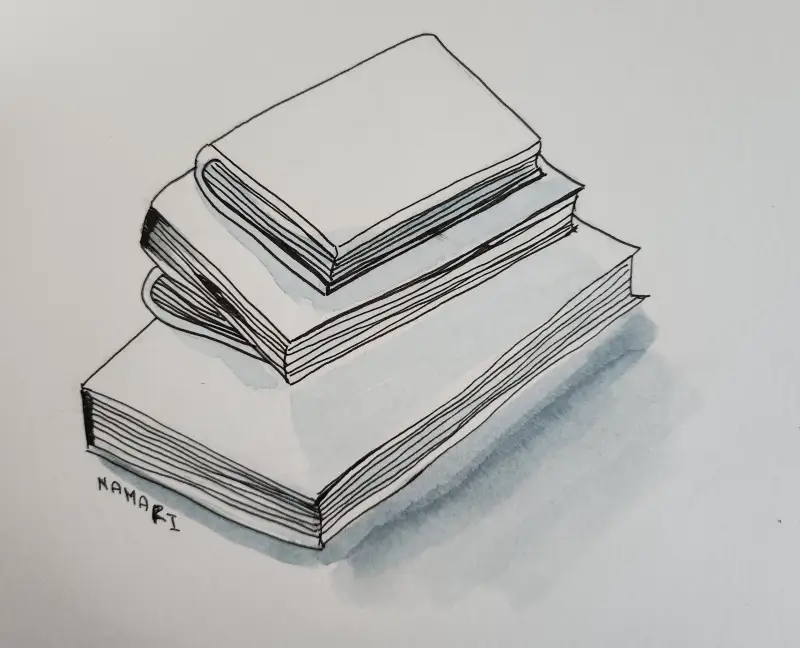 드로잉로그5기 3주차 버킷리스트 그리기 두번째 그림은 독서입니다. 이후에 읽을 쌓여있는 책들을 펜으로  그렸습니다.