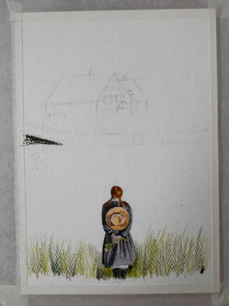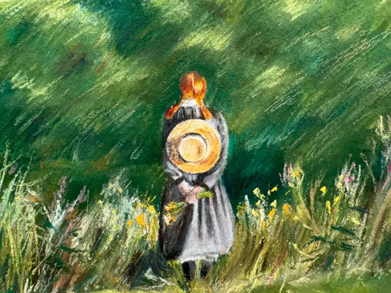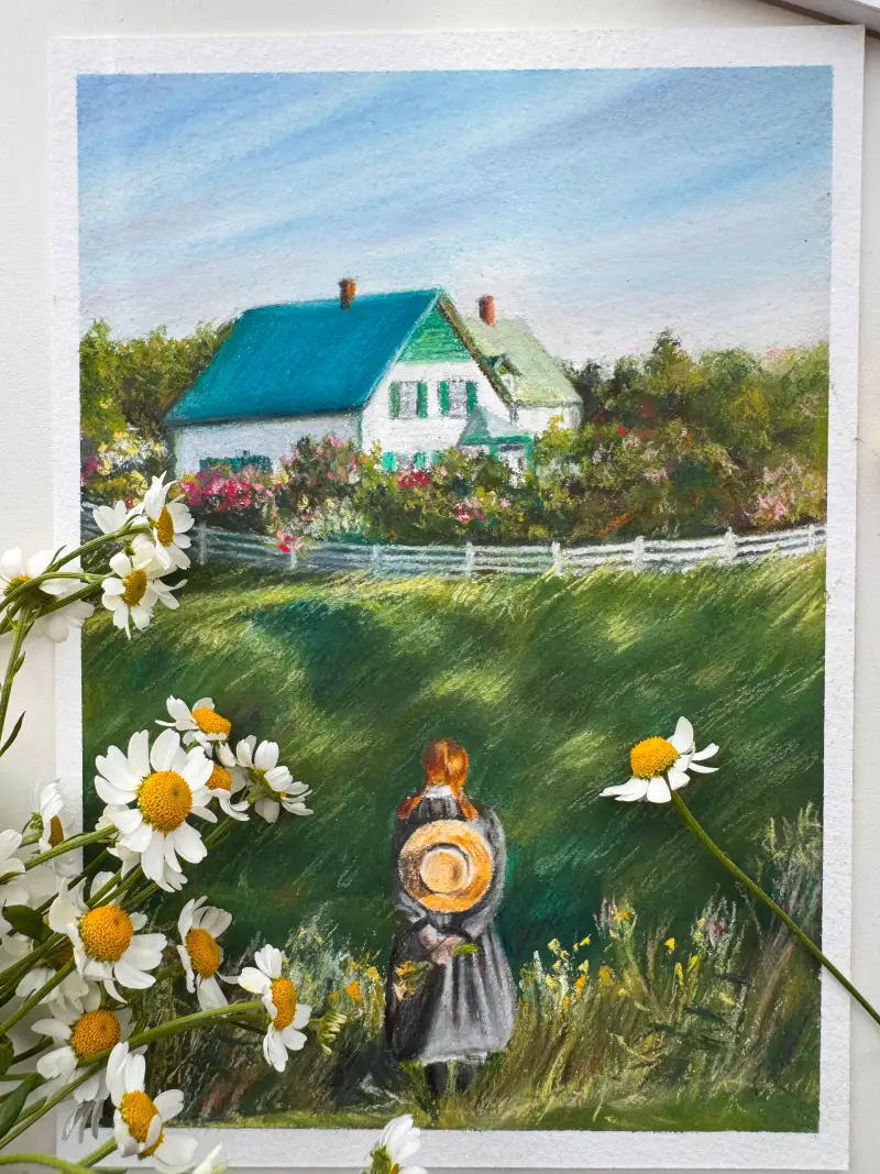 에이번리 마을의 바람부는 초여름 들판을 바라보는 앤을 그려보았어요☺️