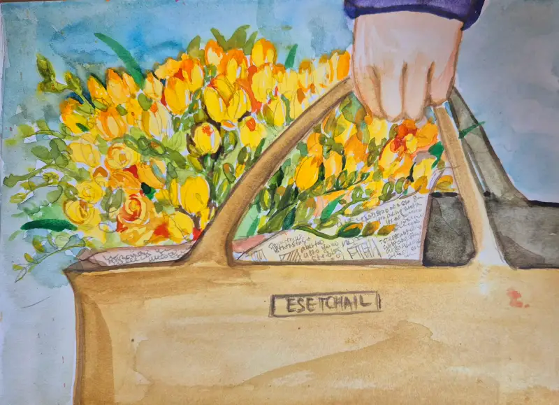 선물로 산 후리지아에서 봄 향기가 피어난다