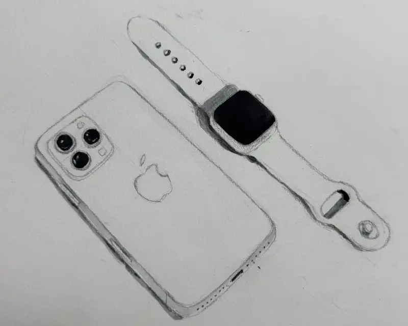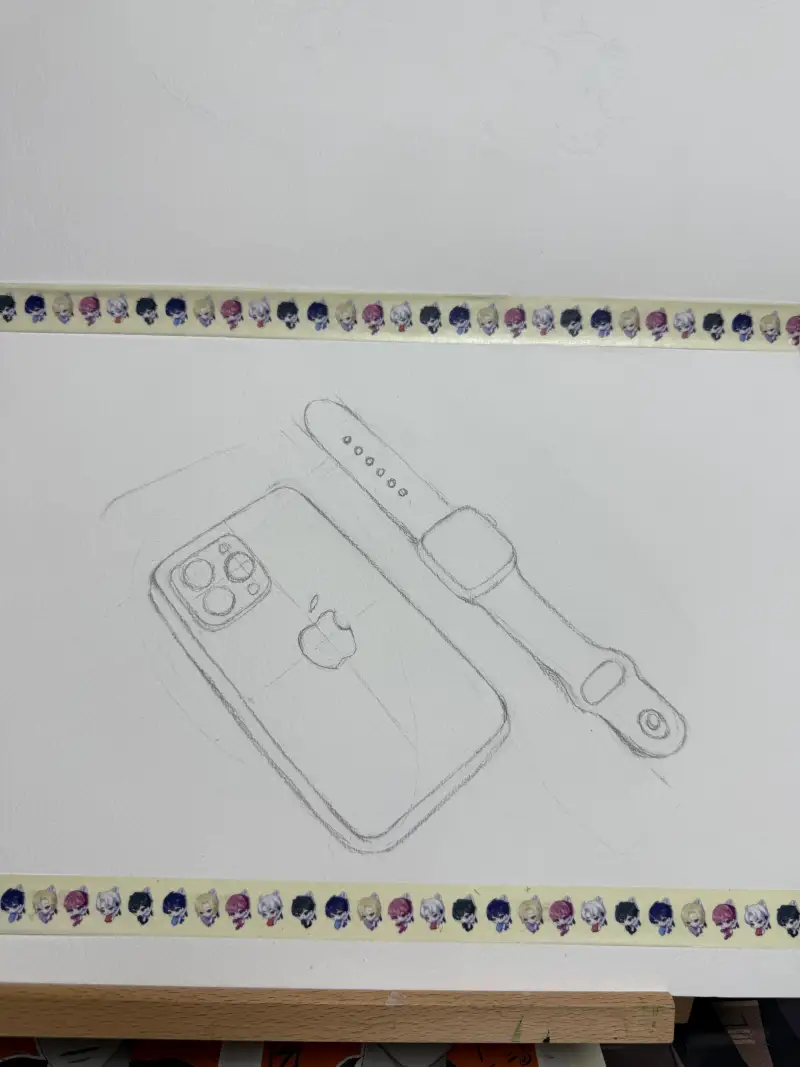 외출필수템 핸드폰과 애플워치를 그려봤습니다!