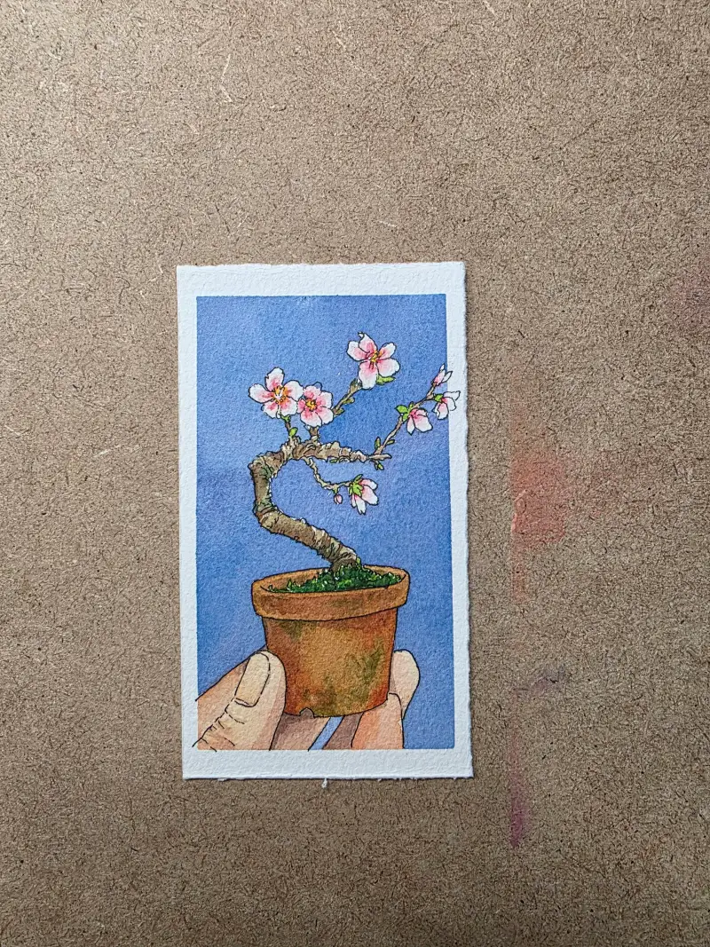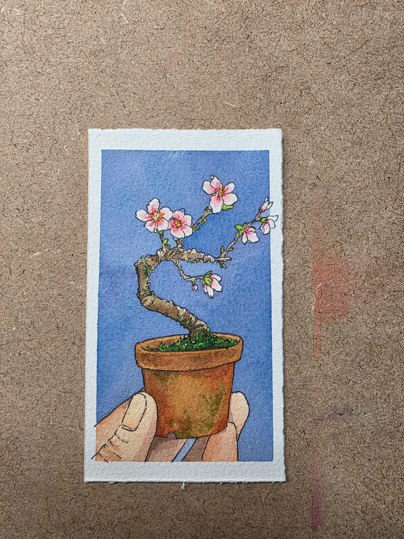 고민하다 귀여운 분재 사진을 보고 따라그렸어요.