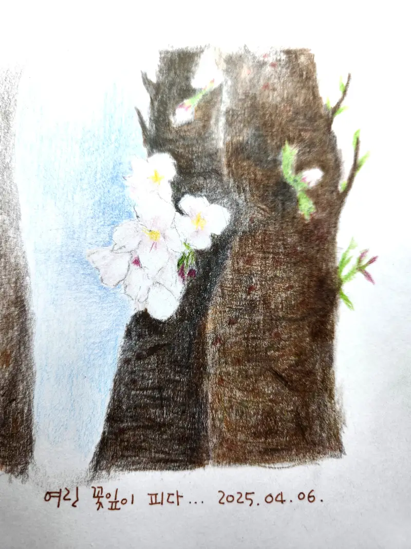 드로잉로그7기_1주차(1)_빼꼼~나무기둥사이에 핀 벚꽃 - 화방넷 커뮤니티