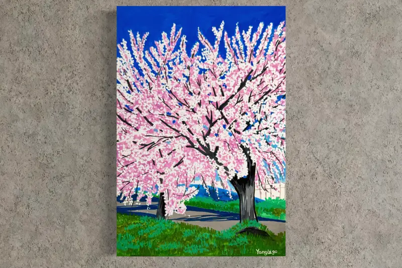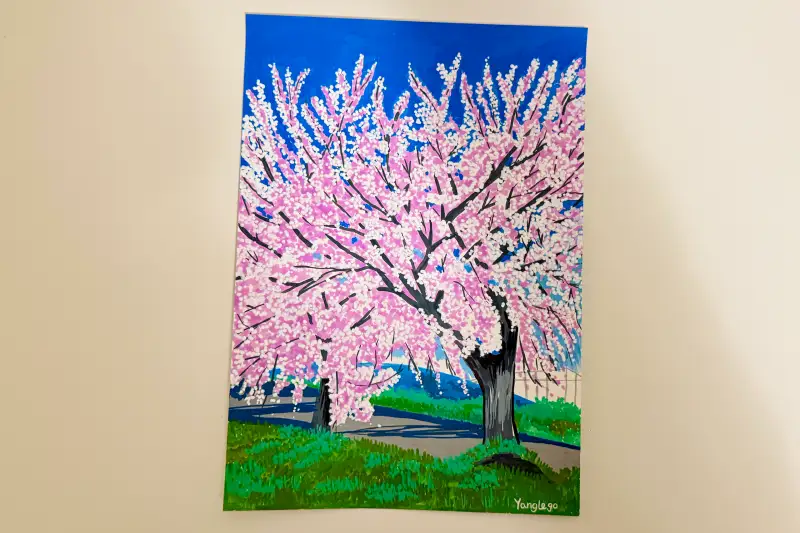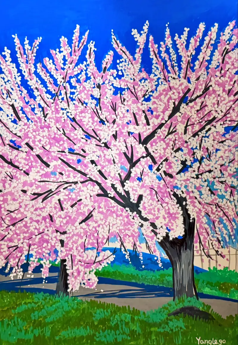 저는 봄이오면 벚꽃이 풍성하게 피어있는게 넘 좋아요!! 이번 그림은 마카펜을 활용하여 그려보았습니다 🤭