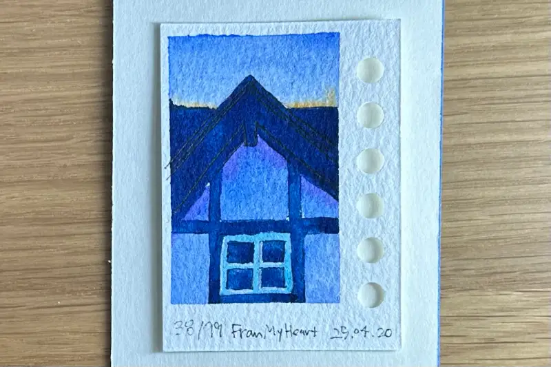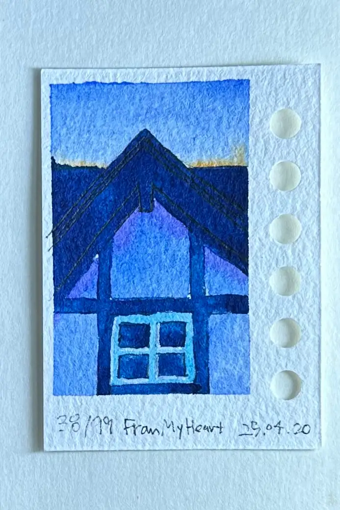 지금은 주로 수채화를 메인으로한 tiny drawing을 하고 있어요. 100 개 그리는 게 목표고, 이건 38번째 그림입니다.