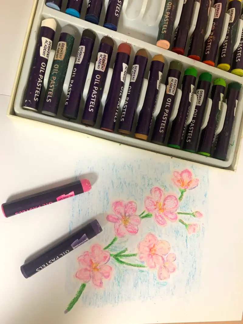 더웬트 파스텔로 그린 벚꽃은 더 투명하게 빛나는 듯합니다.