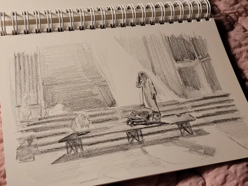 연필로 소묘하듯 그려봤어요. 2000년도 영화버전의 라섶 중 한 장면인데요, 정말정말 좋아하는 버전이어서 언젠가 한번 꼭 그려야지! 하고 마음먹고 있었는데 이렇게 그리게 될 줄은 몰랐네요 ㅎㅎ