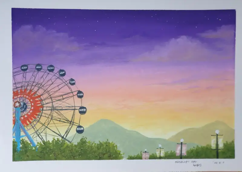 관람차 그리기 어렵네요...영상보며 해도 어렵네요...그저 느낌만 냈어요...ㅠㅠ