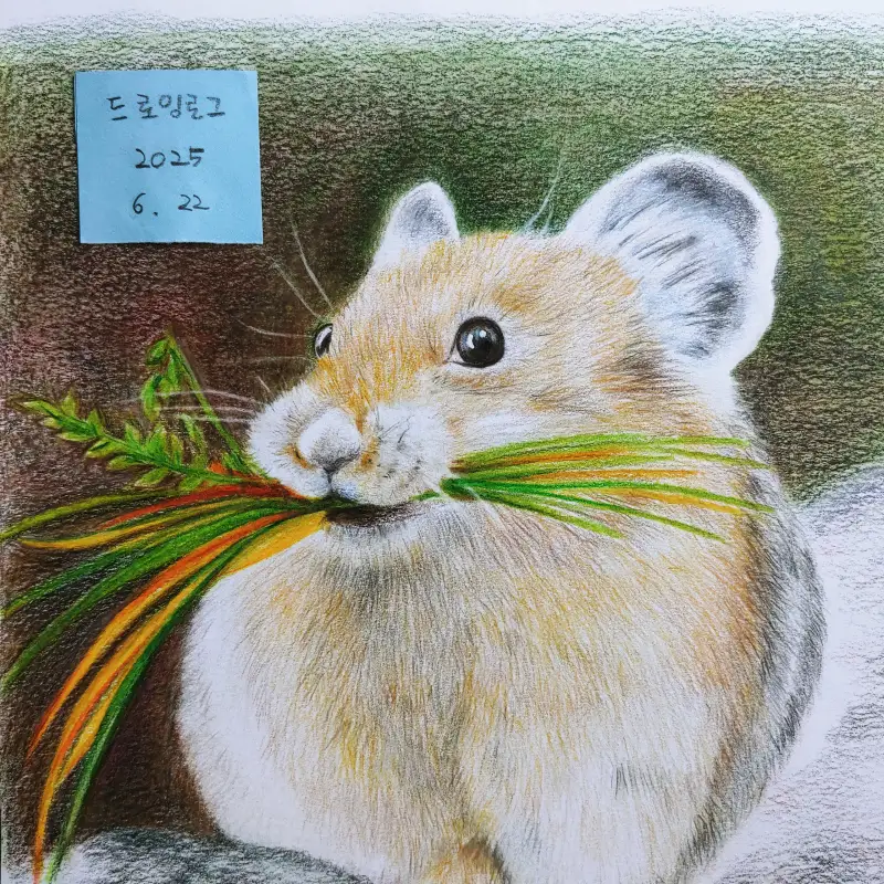 두번째 동물그리기는 새앙토끼(쥐토끼)를 그려봤어요~고지대에 서식하는 동물로 피카츄 모델이라는데 이동물 역시 최근 기후변화로 멸종 위기 관심등급 대상이라네요