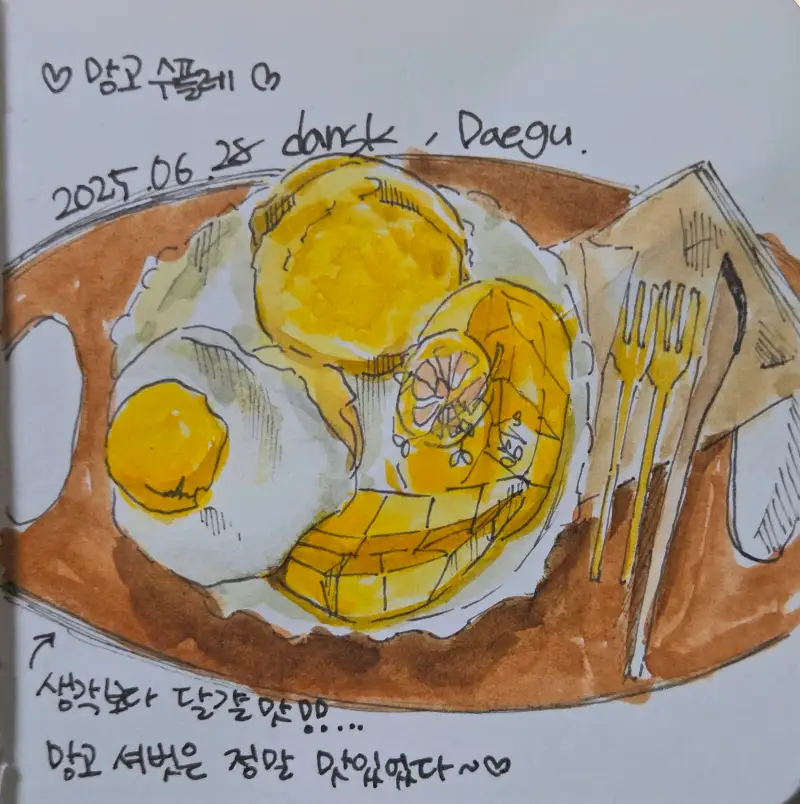 저 오늘 너무 기분이 좋아요~ 왜냐! 바로 좋아하는 망고를 먹구왔어요ㅋㅋㅋㅋ 수플레가 너무 먹고싶어 찾아보던 중 제가 애정하는 망고까지 함께 주는 집이 있지 모예욤~