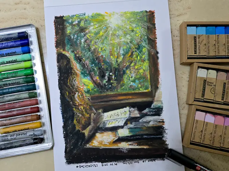 🎨사용재료: 카와치 빅오일 파스텔 베이비(리미티드 에디션), 윈저앤뉴튼 오일파스텔, 삼원 오일파스텔 전용지