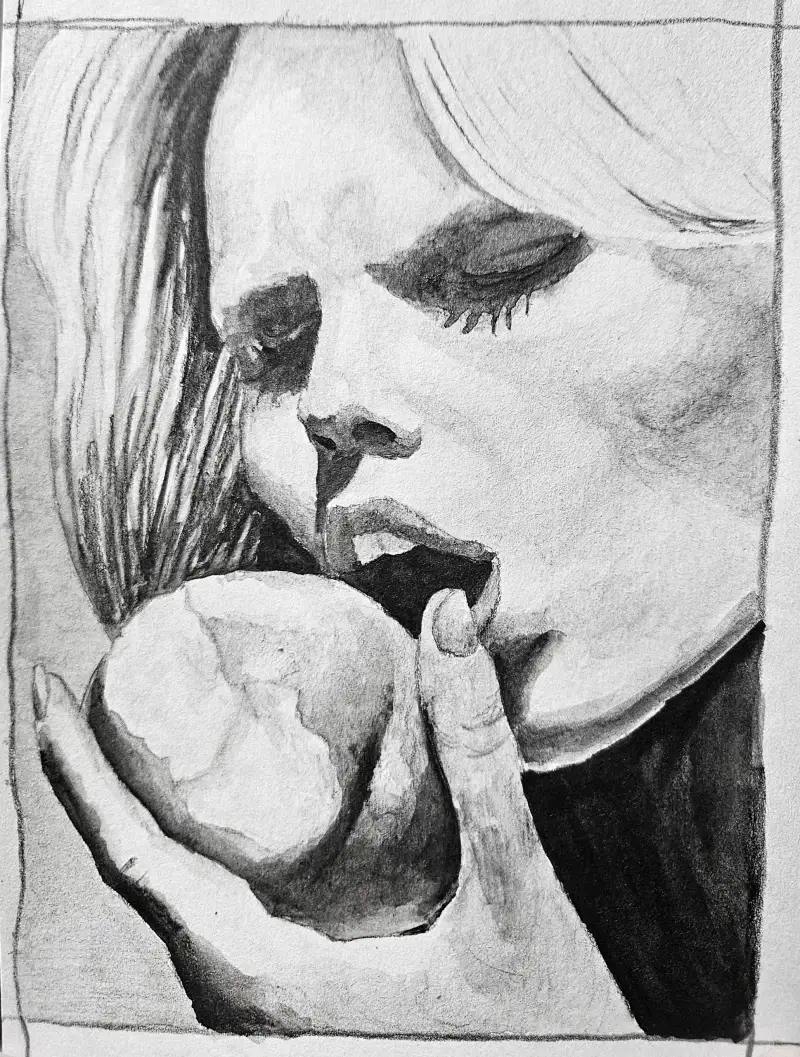 드로잉로그9_1-2_천도복숭아 먹는 사람_수채연필 - 화방넷 커뮤니티