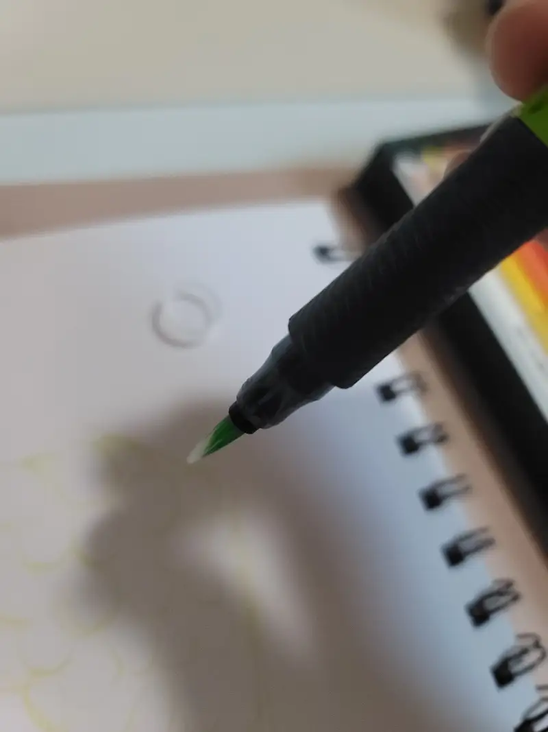 노란색은 너무 세게 눌러서 잉크 흘러나왔어요.
