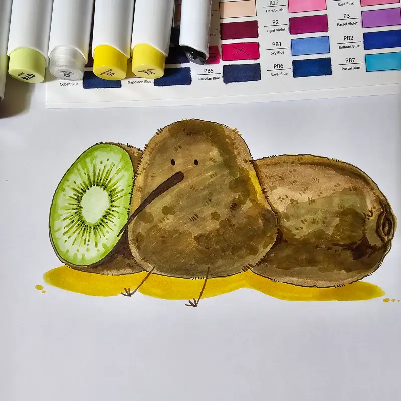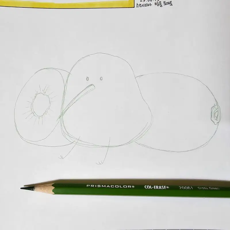 예전에 키위 먹다가 그렸던 그린키위새입니다!